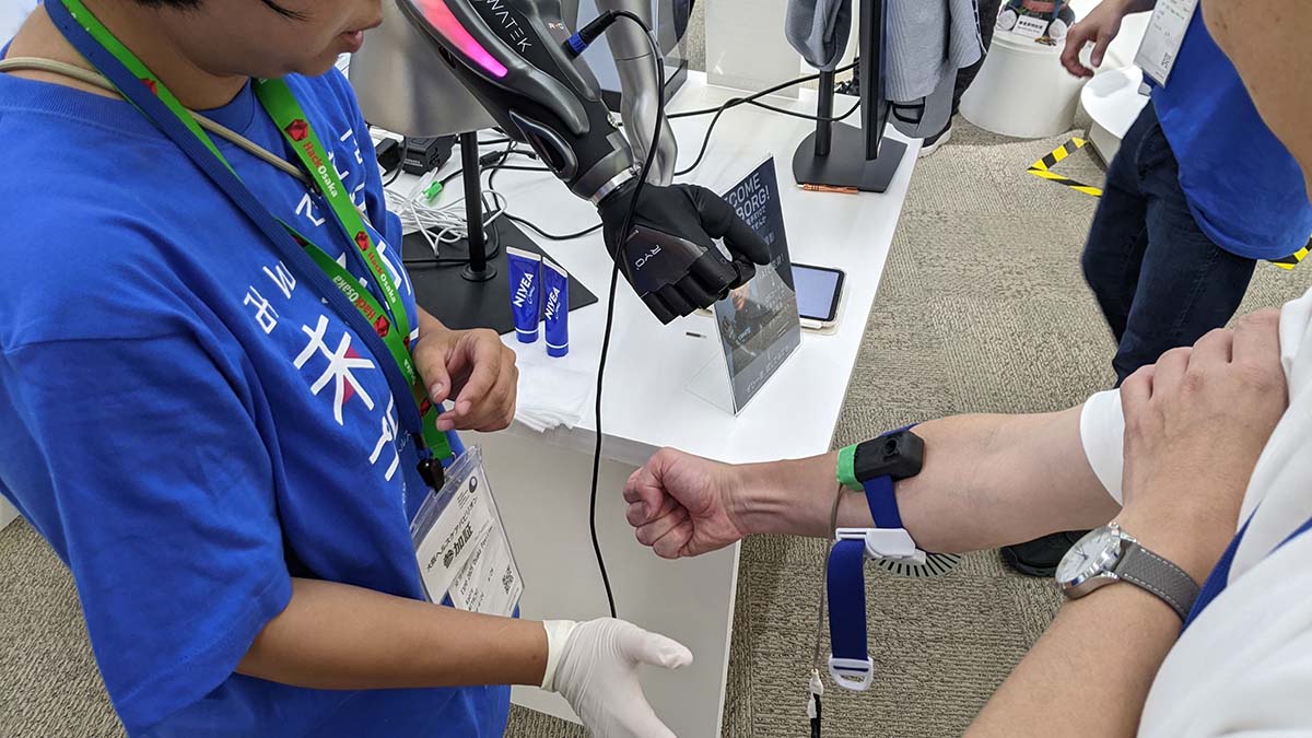 「リボーンチャレンジ」エリアにおいて、体験待ちや動画撮影でとりわけたくさんの人だかりを作っていたのが、カワテック株式会社のバイオニックハンド『RYO』です。『RYO』は上肢障害者向けの義手で、人工知能と感覚フィードバックを活用することで、自然で直感的な動きを実現してくれます。万博会場では体験者の腕にセンサーを取り付け、体験者の手の動きに合わせて『RYO』も動くデモンストレーションを実施。多くの人が、その技術力の高さに驚きを見せていました。また期間中に、上肢障害者の体験者もいたそうで、その時の動画を見せてもらったところ、体験者のご本人はもちろんのこと、横で見守るご家族がとても喜んでいる姿が印象的でした。万博での出会いがきっかけで、生活や人生にまた新しい光が差し込むことがあればと思います。