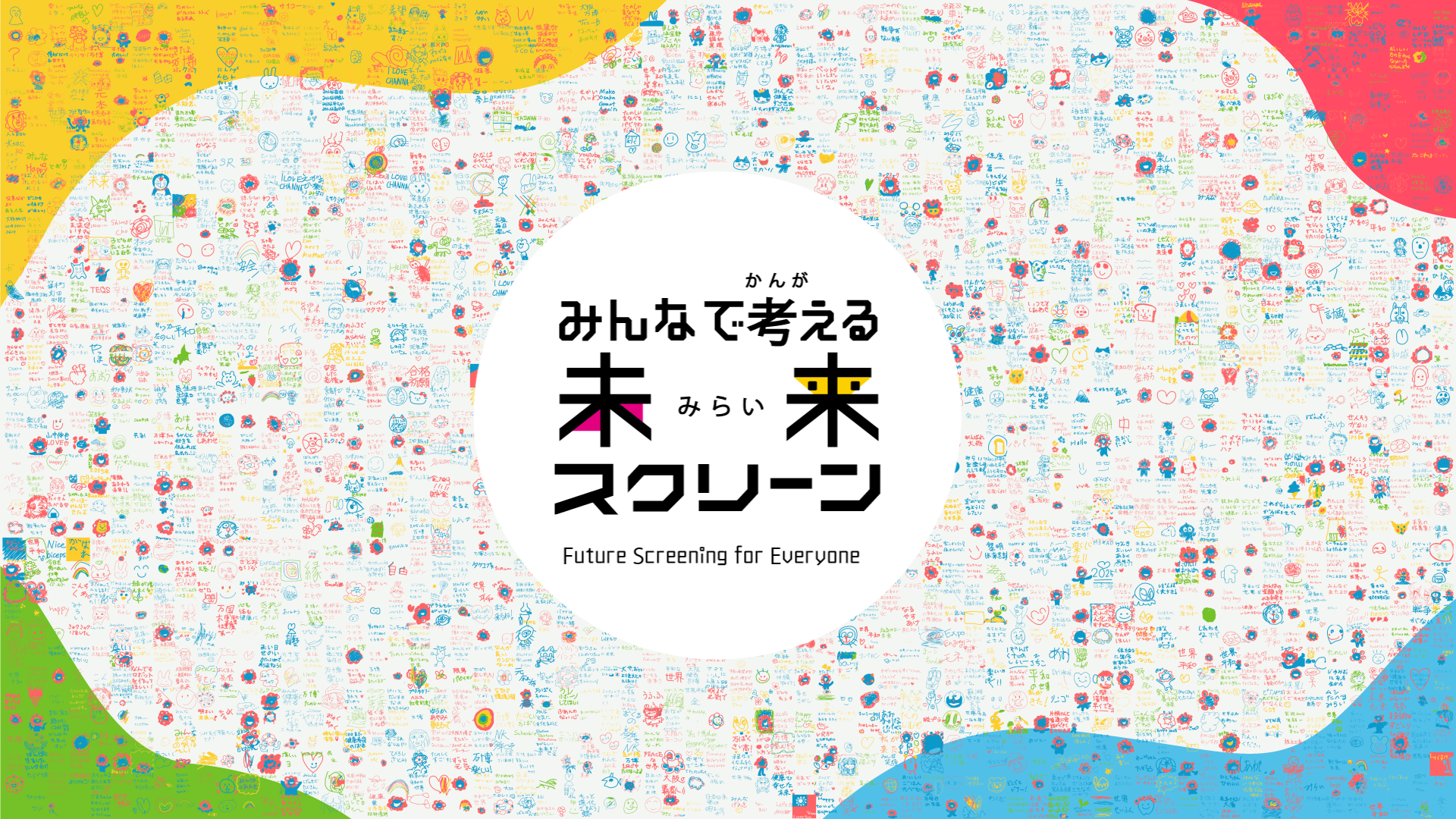 企業による出展以外にも、共創のための仕掛けが用意されていました。それは、出口近くに設置された大型スクリーンで、その名も「みんなで考える未来スクリーン」です。このスクリーンは、一通り“未来”を体験された来場者の方に、体験を通して感じた「自分の考える未来の街」について言葉として残してもらうという試みです。いわば、未来社会についての“デジタルヨセガキ”です。小学生を中心に多くの方にご参加いただき、5000件を超えるメッセージを書いていただけました。まさに、出展企業と来場者の共創ですね。