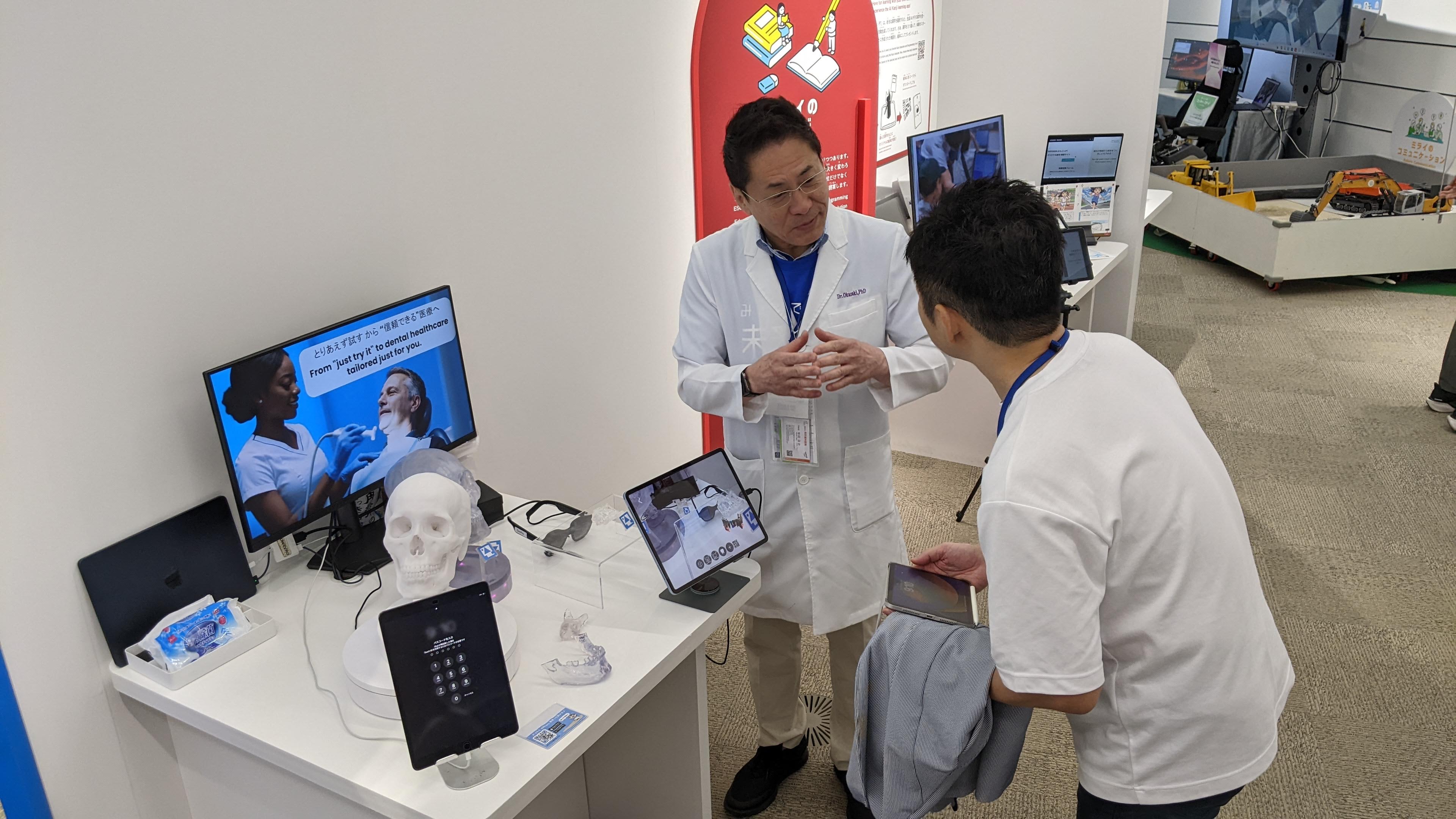 TEQSが実施主体の「リボーンチャレンジ」エリアでは、ヘルスケア関連のプロダクトが多いのも特徴的でした。歯科医師の宇野澤元春氏が代表取締役を勤める株式会社Dental Predictionが展示していたのが、患者さんの一般的なCTデータから、正確な歯の3Dデータを作り出す『DenPre 3D Lab』のサービス。透明の歯型模型に投影されたサンプルAR映像では、歯の形や大きさはもちろんのこと、神経の位置や長さまでハッキリ確認できます。「ここが神経で、ここが虫歯になりやすいところで…」という説明を聞いていると、まさに近未来的な歯科クリニックでのやり取り。解説いただいた歯科医師によると、「従来は歯科医師の経験や推定で治療していた部分が、この技術で患者さんの状態が正確にわかるので、より的確な治療を行えるようになりますし、患者さんにも安心して治療を受けてもらえます」とのこと。すでに全国150ヶ所以上の歯科やクリニックで導入されているそうなので、かかりつけの歯科医院で聞いてみるのも良いかもしれませんね。