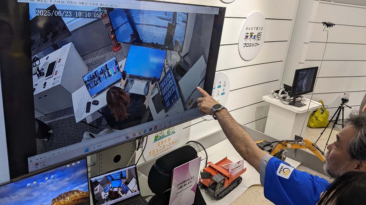 TEQSが実施主体を務めた最終日にピックアップステージとして設けられた「フューチャーステージ」の展示を担ったのがORAM株式会社。同社のサービスは“未来の働き方”の提言となる、建機などの働く車の遠隔化です。実際には本物の建機に遠隔操縦装置を取り付けて、遠く離れた場所から建機を操縦する技術ですが、万博会場では1/14スケールモデルの建機を、お隣の咲洲・ATCにある5G X LAB OSAKAから操縦するデモを行いました。男の子を中心に小さな子どもたちは興味津々で、遠隔操縦するスタッフと、実際に眼の前で動く建機を食い入るように見ていました。
