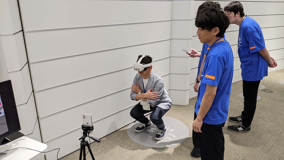 エリア内で、ひと際盛り上がりを見せていたのが、『Walk Care』。体験者がふくらはぎに専用デバイスを装着し、5m歩いて数回スクワットをするだけで、その人の歩行の質や歩行年齢などが瞬時に測定できるサービスです。今回の万博会場ではVRゴーグルを装着することで、測定結果が目の前の仮想空間に表示される近未来的な演出もプラス。この期間中だけでも老若男女2000人近くが、測定を体験されました。測定でも、特に盛り上がるのがスクワットタイム。体験者の動きに合わせて発せられるスタッフの掛け声がまるでお祭りのようで、体験者や観客も思わず笑顔になってしまいます。ちなみに、記者の私も体験したところ、歩く速度と滑らかさが足りないとの結果でした…。