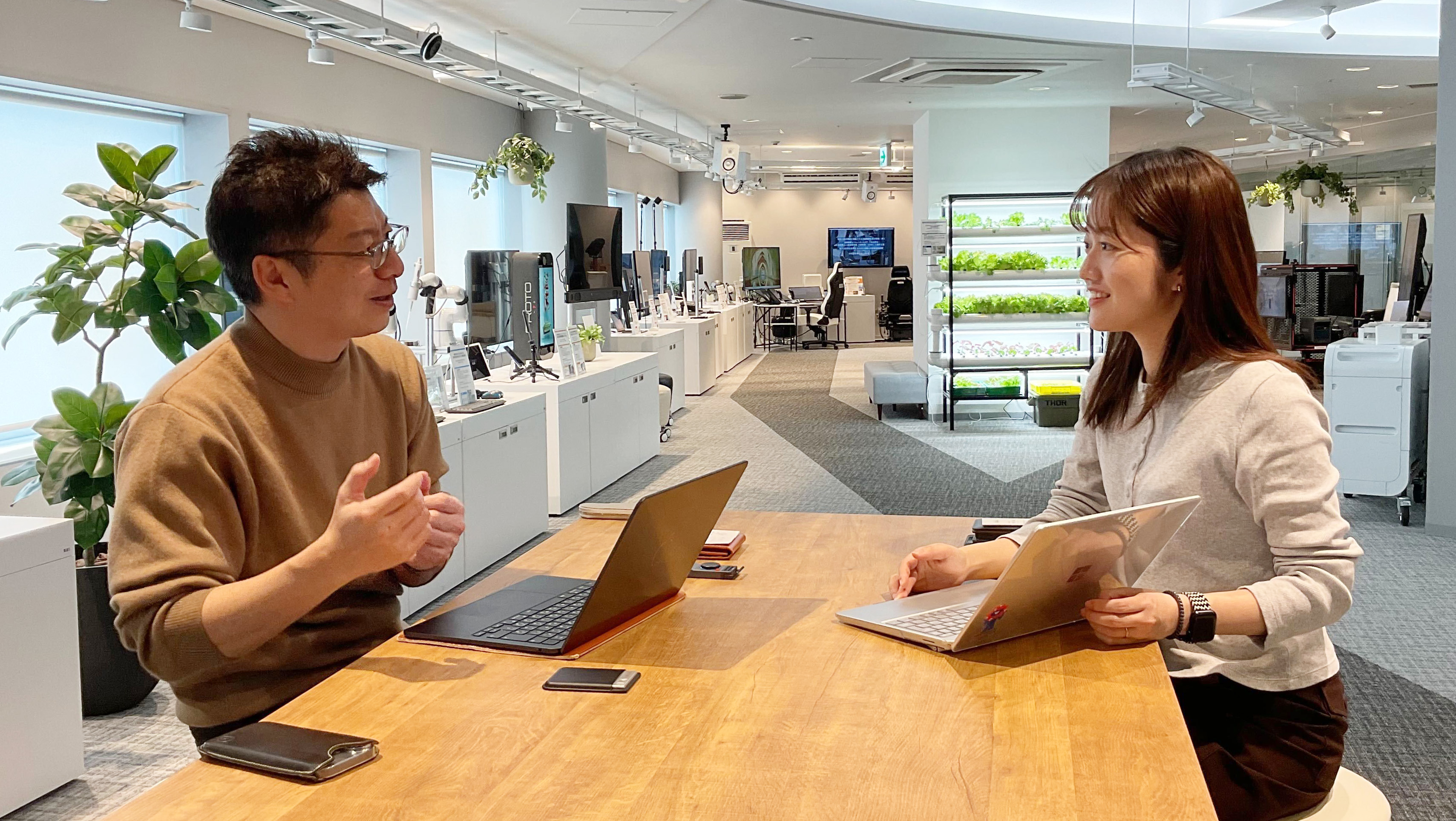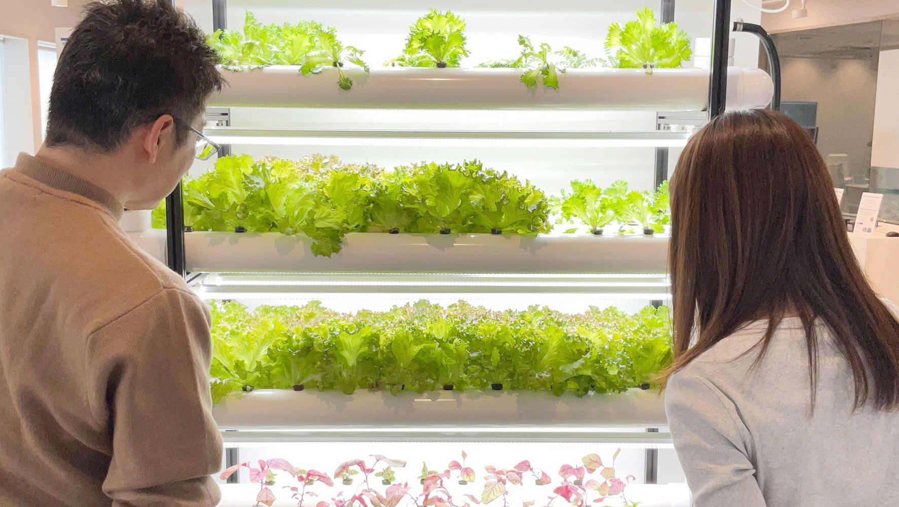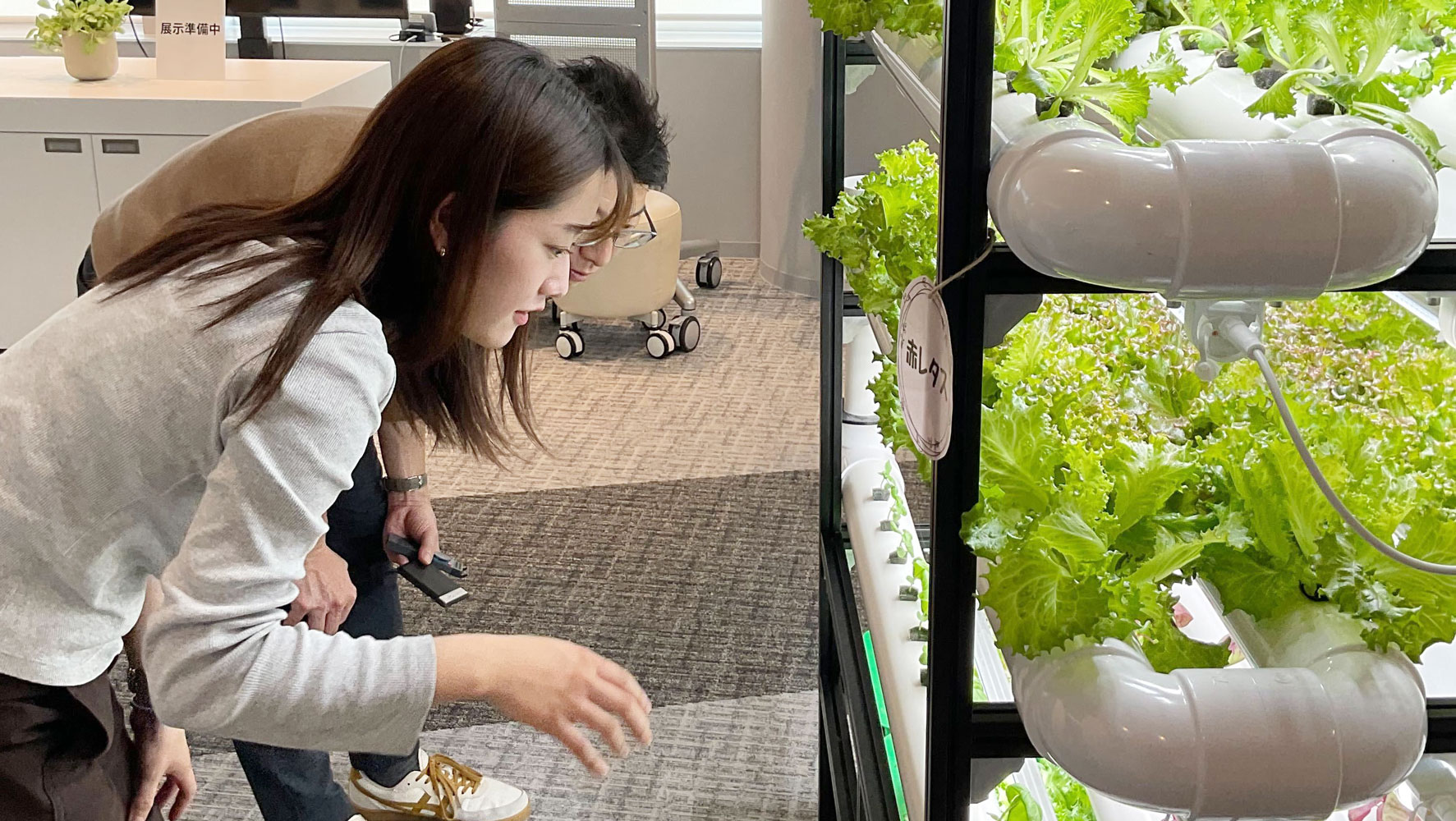 実際に青々と育っている野菜や、水が流れるシンプルな構造を見ていただくことで、「こんなに省スペースでできるんだ」「オフィスのロビーにグリーンとして置いてもいいかも」と、お客様の反応が劇的に変わります。つい先ほどまで見学に訪れていたお客様も「ロビーに欲しい」と仰っていたと、5G X LAB OSAKAのスタッフの方からお聞きしました。見込み客の方をお連れする「ショールーム」として、非常に大きな役割を果たしてくれていますし、また5G X LAB OSAKAの展示のご紹介という形で、私たちの知らない間にさまざまな方にご紹介いただけているのも、大きなメリットだと思います。
